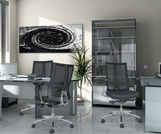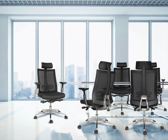 Impresionante sillon ejecutivo con respaldo de malla y asiento de tela