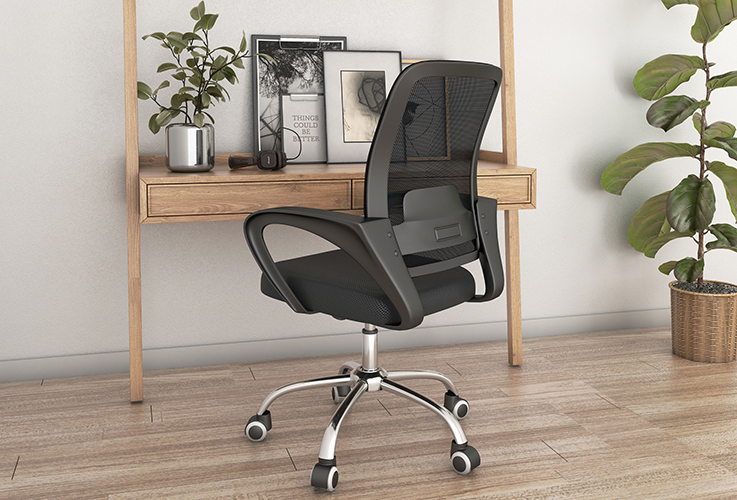 •respaldo en malla suave color gris y asiento tapizado en tela OFFICE