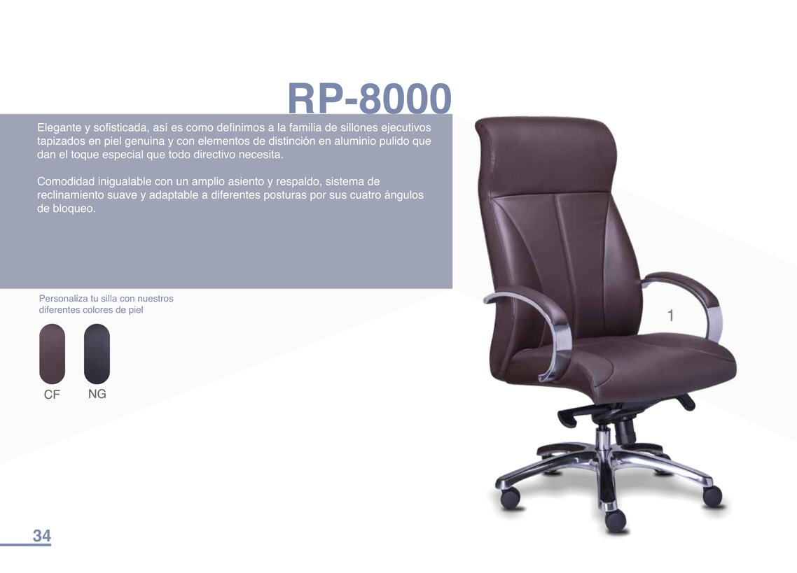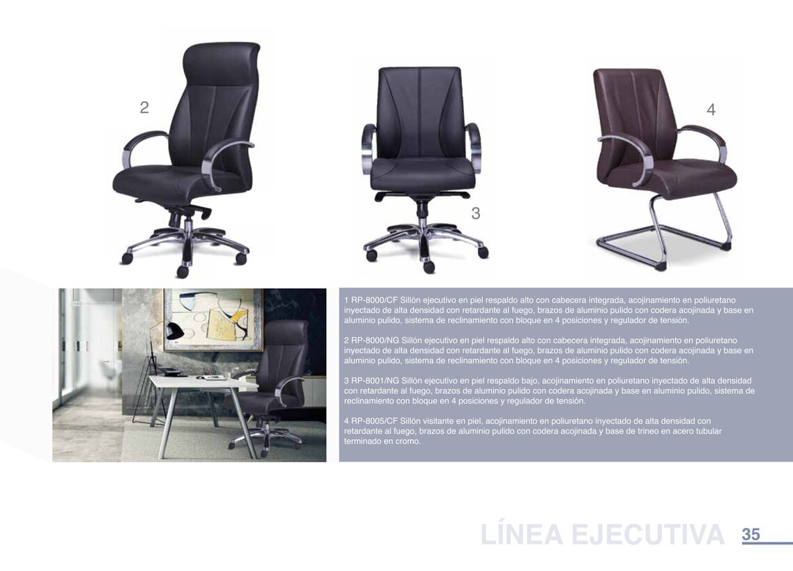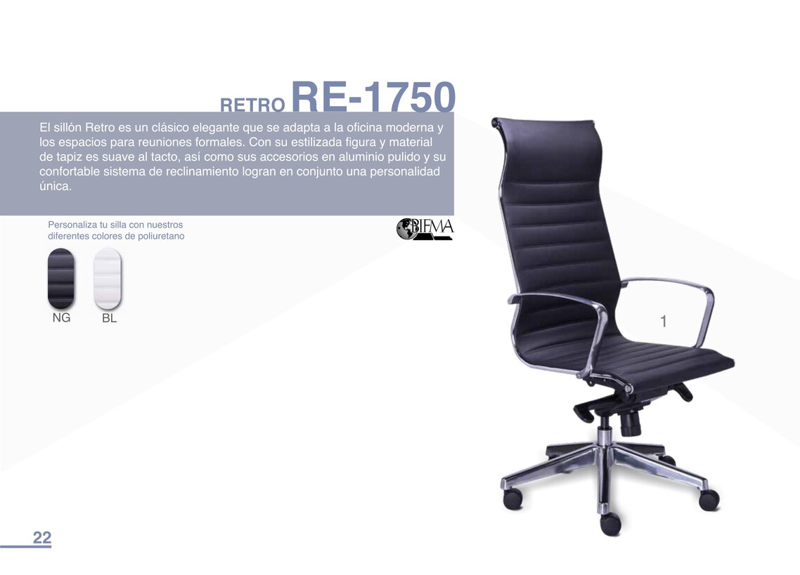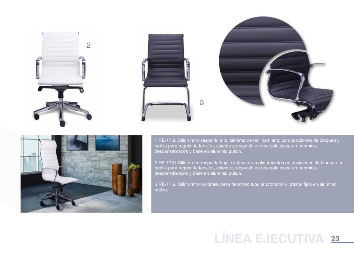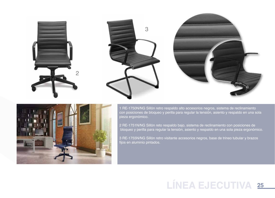 Sillón ejecutivo en mesh con diseño ergonómico. Su mecanismo cuenta con reclinamiento synchro autopesante, con 3 ángulos de reclinamiento con bloqueo a través de un maneral para regular la tensión, profundidad de asiento slider y brazos fijos. El asiento es ergonómico con acojinamiento elaborado en poliuretano inyectado de alta densidad con retardante al fuego y sus rodamientos duales de nylon recubiertas de poliuretano suave para piso duro.