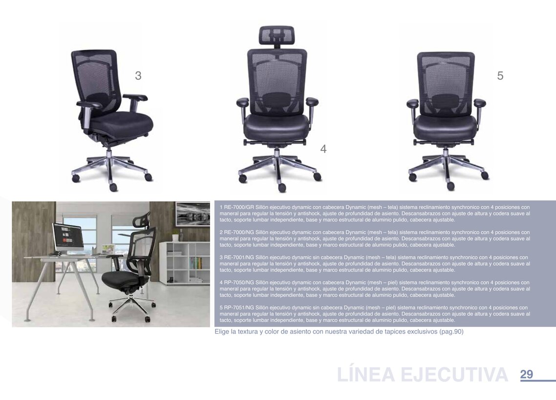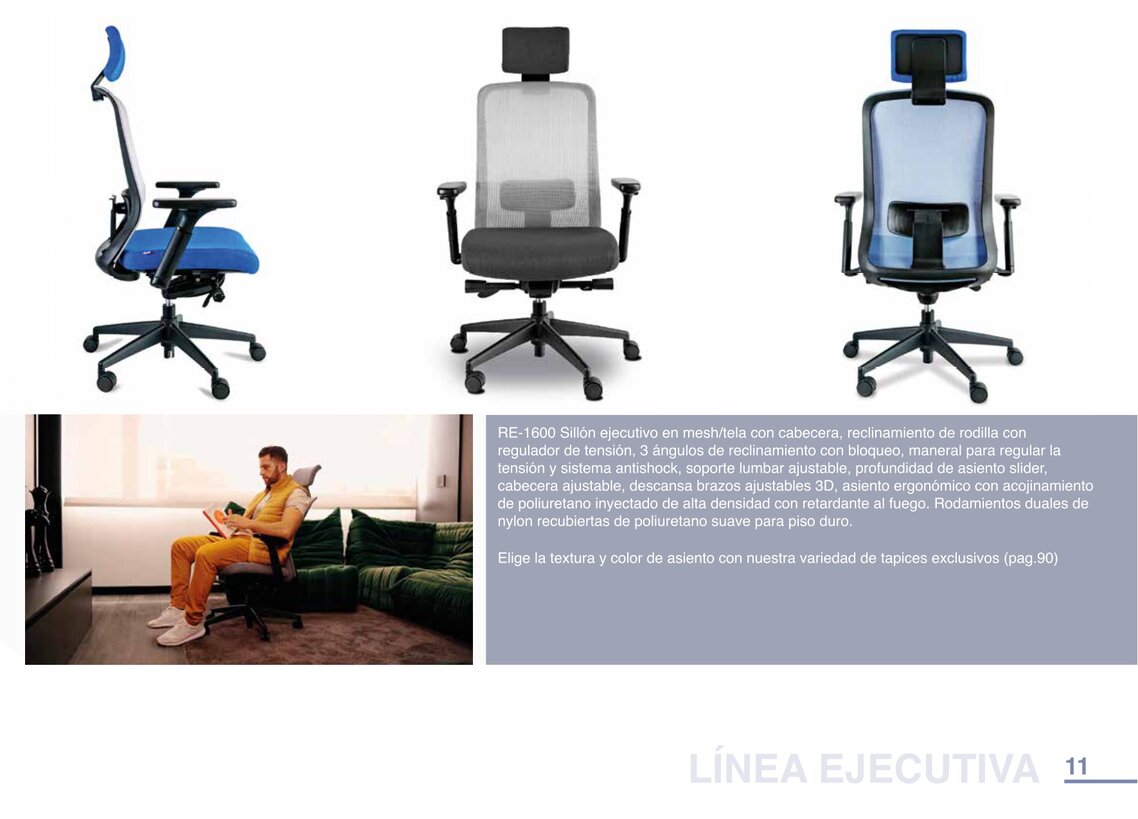 Sillon ejecutivo respaldo mesh con cabecera y reclinamiento. Colores de respaldo Mesh: negro, gris, azu