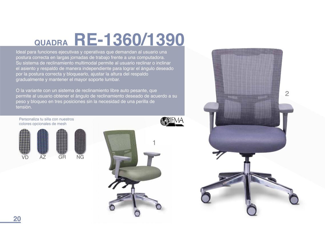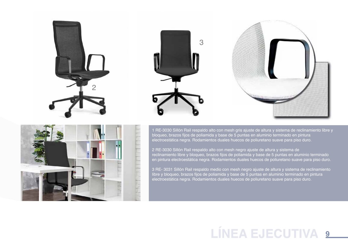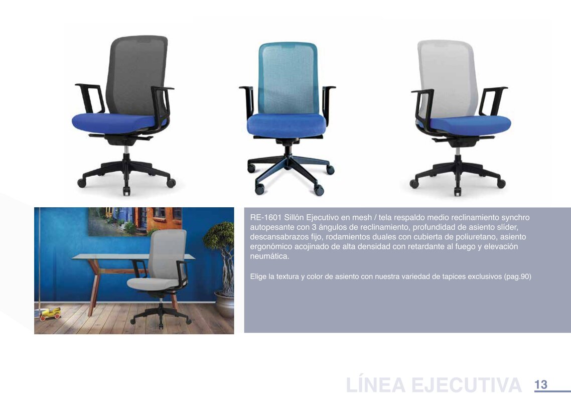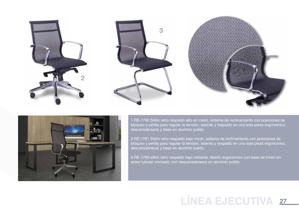 Sillon ejecutivo respaldo mesh y reclinamiento. Colores de respaldo Mesh: negro, gris, azul