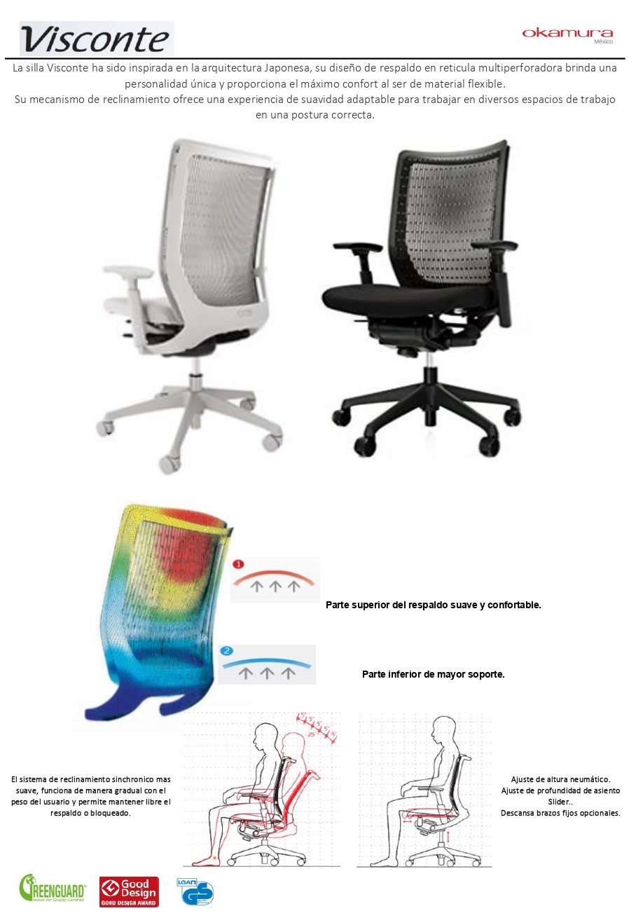 Visconte es la última silla de trabajo de Okamura que combina un diseño ergonómico para el máximo confort con una amplia gama de opciones de personalización. El respaldo de la “Rejilla flexible” se flexiona con la parte superior de la espalda, mientras que la parte inferior de la espalda es compatible para mayor comodidad. Con la opción de elegir entre 3 tipos de respaldo, varias opciones de color y extras opcionales (como un asiento deslizante y soporte lumbar), el Visconte puede adaptarse a su presupuesto y lugar de trabajo específicos.