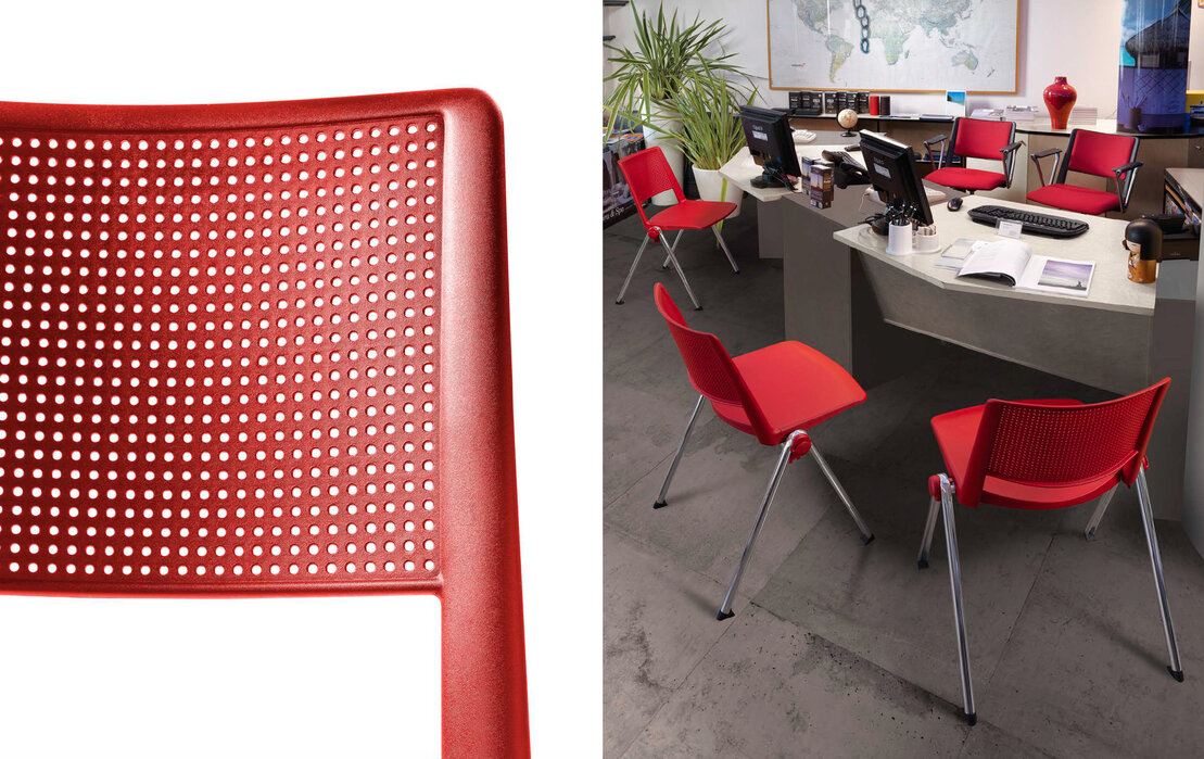 asiento y respaldo: en una sola pieza en polipropileno de alto impacto con aditivo antiestático y ventana de ventilación.