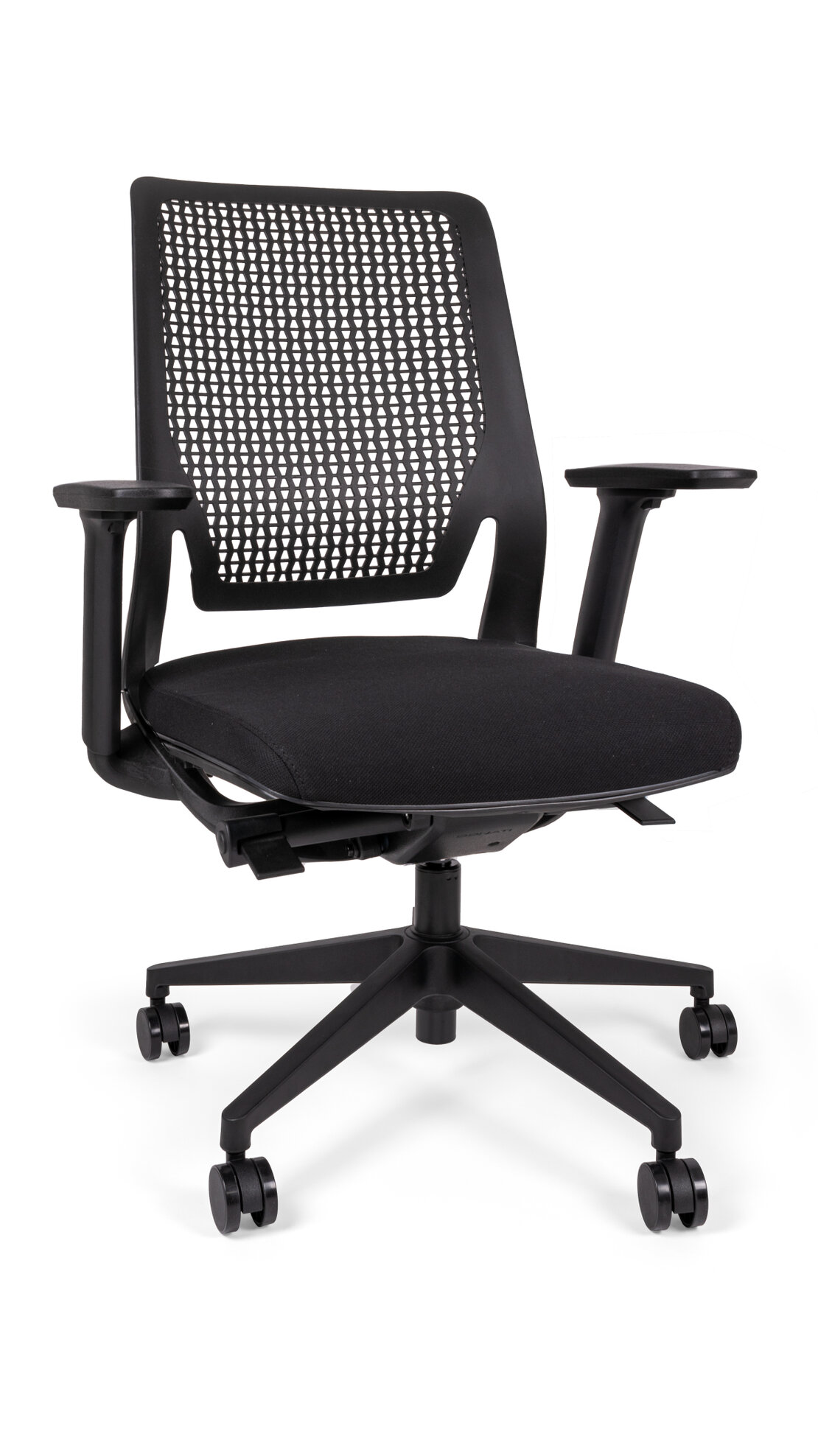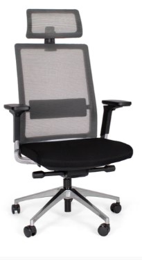 respaldo, asiento y brazos: monocasco en polipropileno de alta densidad reticulado con ventilación y soporte lumbar.