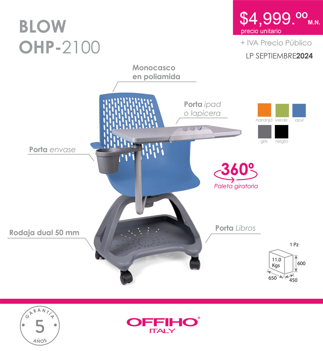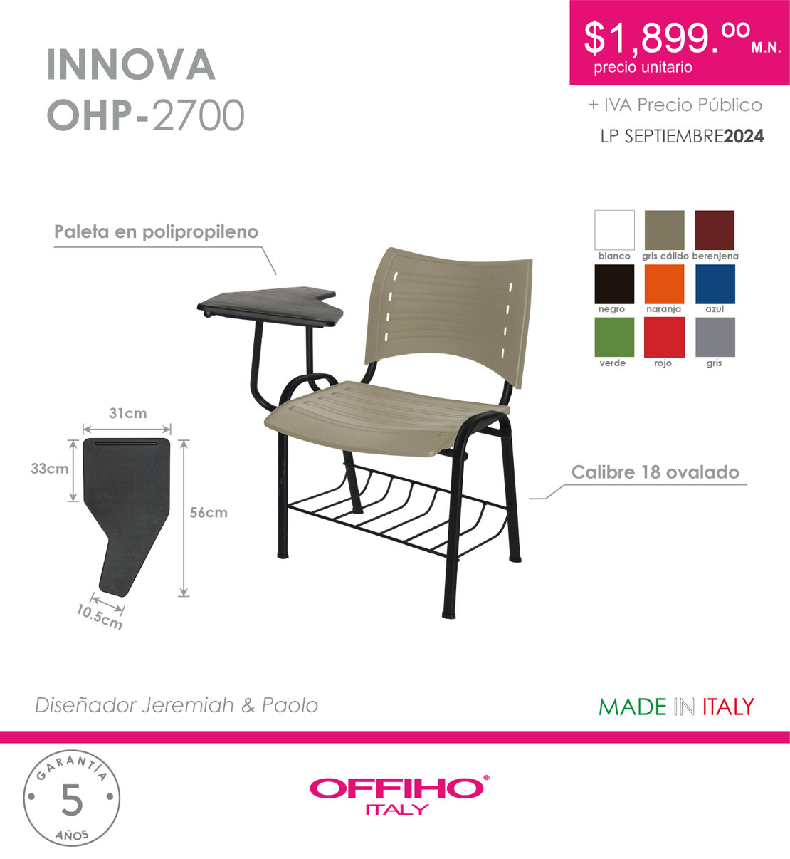 $ 1350 PUPITRE POLY EVO CON PALETA DE POLIPROPILENO JUMBO