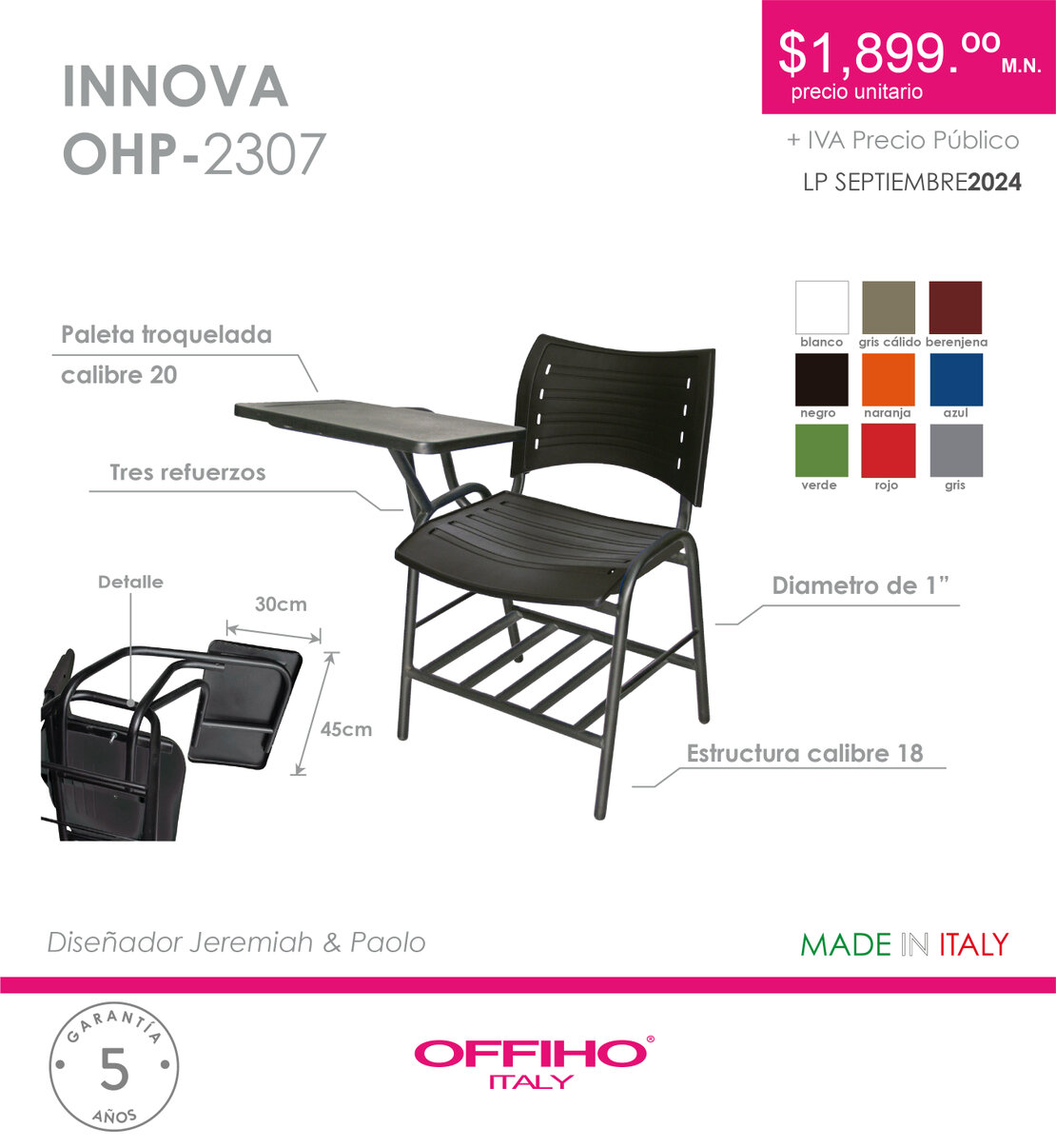 NOTA: disponible con paleta lateral lado izquierdo sobre pedido.