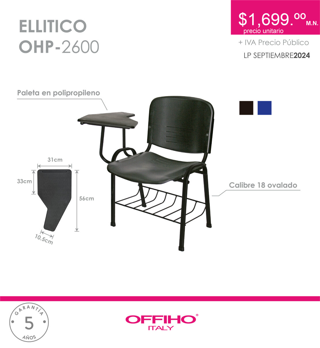 $ 1152 PUPITRE POLY CONCHA TRADICIONAL CON PALETA DE POLIPROPILENO