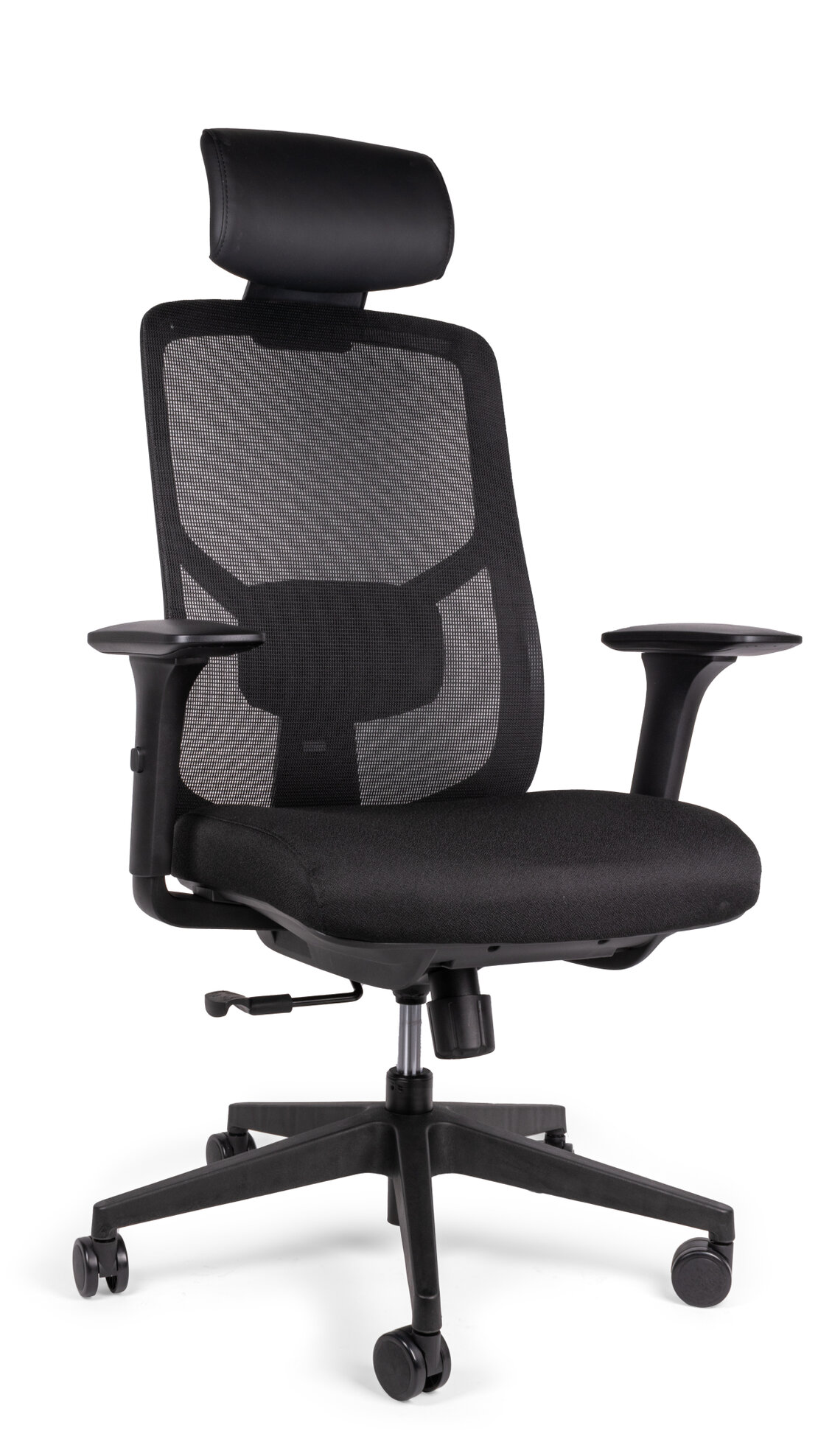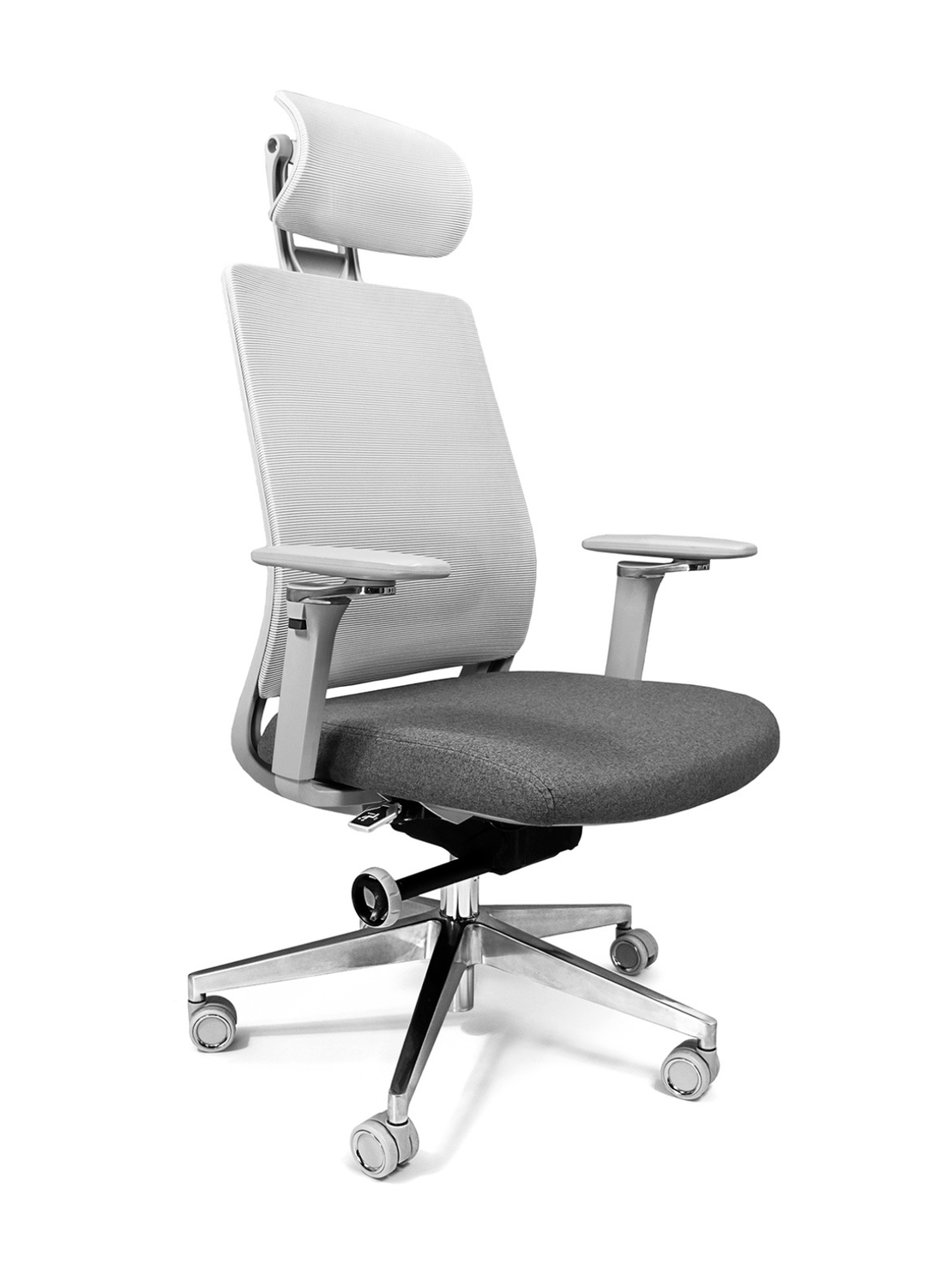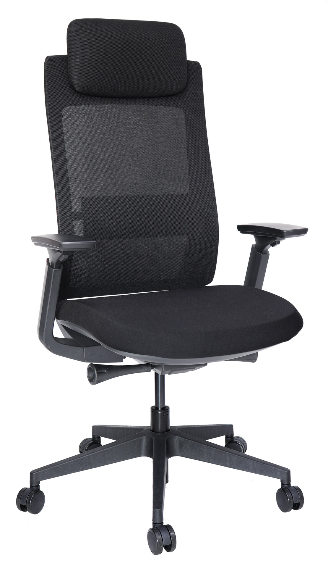 respaldo, asiento y brazos: monocasco en polipropileno de alta densidad reticulado con ventilación y soporte lumbar.