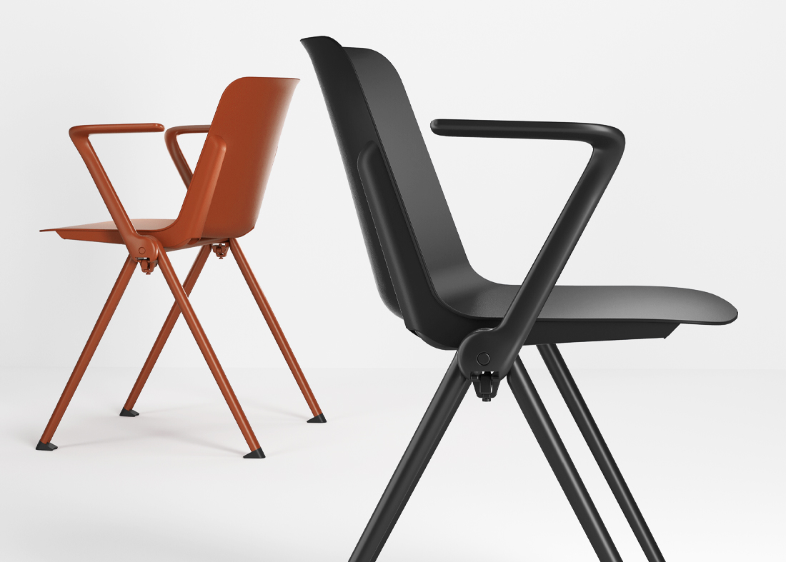 VESPER es una gama de productos formada por sillas, sillones y taburetes, cuyos cascos son de polipropileno reforzado con fibra de vidrio y la estructura de metal.