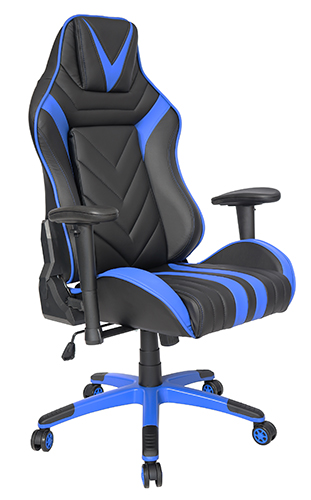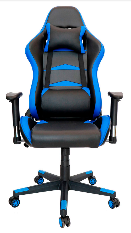 Sube, Baja se Reclina y se Abate (el asiento se queda en varias posiciones. Brazos ajustables adentro afuera suben y bajan, 5 Rodajas, cojines integrados muy grandes para la zona lumbar y cuello ,Color negro con azul . Tapizado en Sort Revolving Leather (no es vinipiel) 150 KG