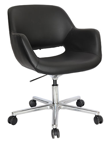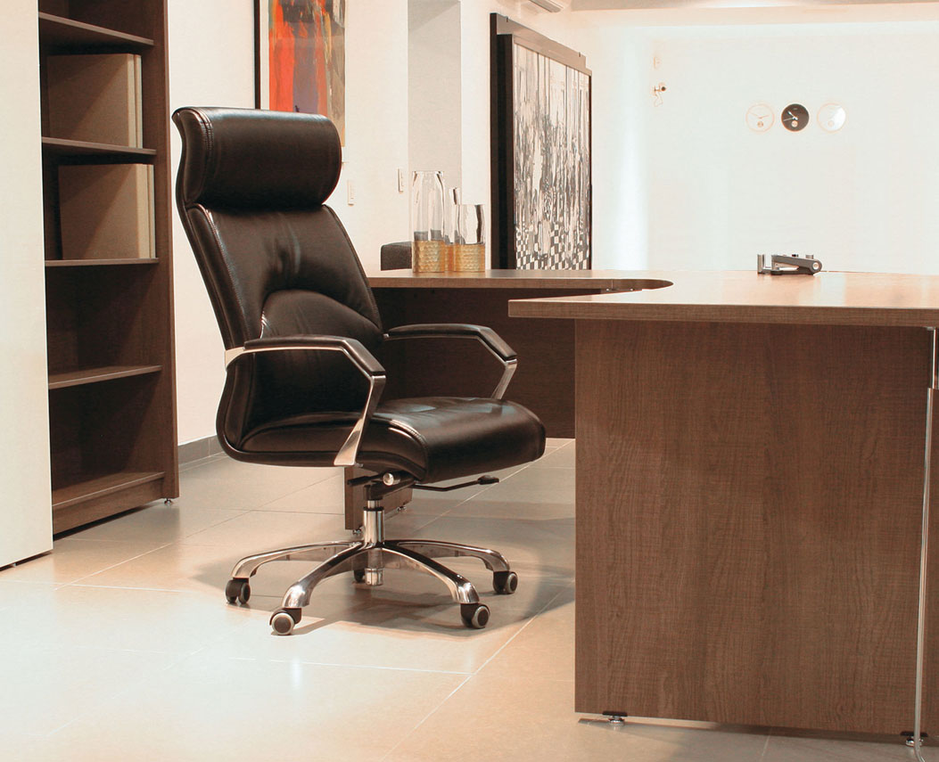 brazos: de aluminio fundido y pulidos con terminado natural. Acojinados y tapizados en soft revolving leather color negro. asiento y respaldo: de respaldo alto hule espuma laminado flexible con densidad de 50 kgs/m3 en respaldo y de 37 kgs/m3 en el asiento y alta resilencia.