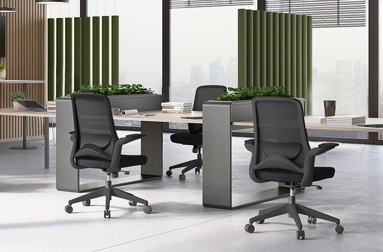 respaldo: bajo en malla de diseño ergonómico. asiento: hule espuma laminado flexible con densidad de 60 kgs/m3 con retardante a la flama y alta resilencia.