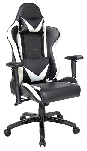 Sube, Baja se Reclina y se Abate (el asiento se queda en varias posiciones. Brazos ajustables adentro afuera suben y bajan, 5 Rodajas, dos cojines para la zona lumbar y cuello ajustables (se pueden quitar)Color blanco con negro . Tapizado en Sort Revolving Leather (no es vinipiel) 150 KG
