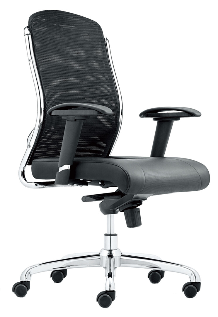 brazos: de poliuretano semi-rígido con soporte de acero y de 7 posiciones. respaldo: en malla de diseño ergonómico.asiento: hule espuma laminado flexible con densidad de 30 kgs/m3 y alta resilencia. tapiz: respaldo de malla de color negro y asiento en soft revolving leather.