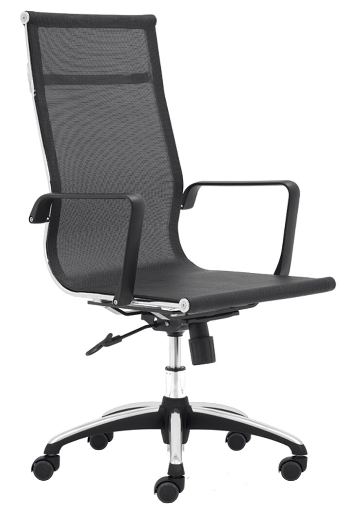 Silla Ejecutiva con respaldo de malla media, Asiento de tela OfficeCrep ,Estrella piramidal negra y rodajas negras