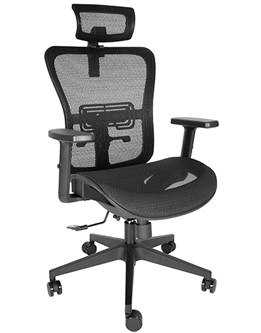 tapiz: respaldo de malla de color negro y asiento en tela de color negro.