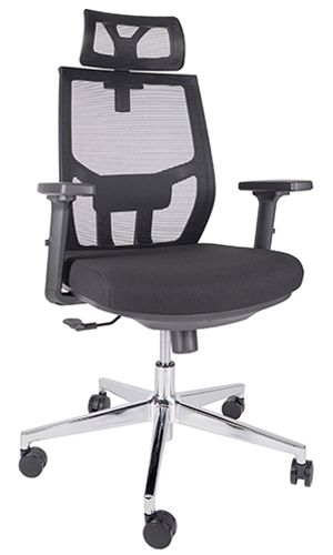 respaldo: en malla de diseño ergonómico con soporte lumbar y cabecera ajustable con sistema flotante.