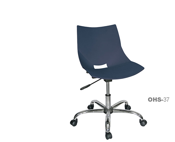 elevación: por medio de pistón neumático con terminado en cromo que permite ajustar la altura del asiento.mecanismo: plato de acero reforzado con palanca de accionamiento y bloqueo del pistón neumático.respaldo y asiento: de una sola pieza en polipropileno de alta resistencia y duración. color: negro, azul, verde, naranja, beige, blanco, rojo o violeta.