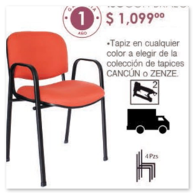 asiento y respaldo: Al color de su elección de nuestro catálogo Cancún o Zenzé.