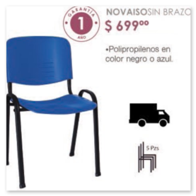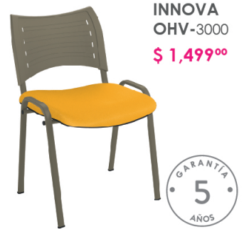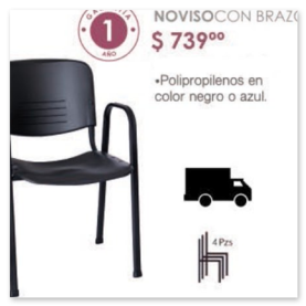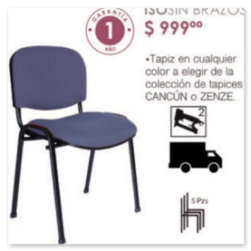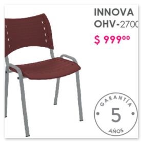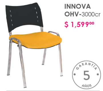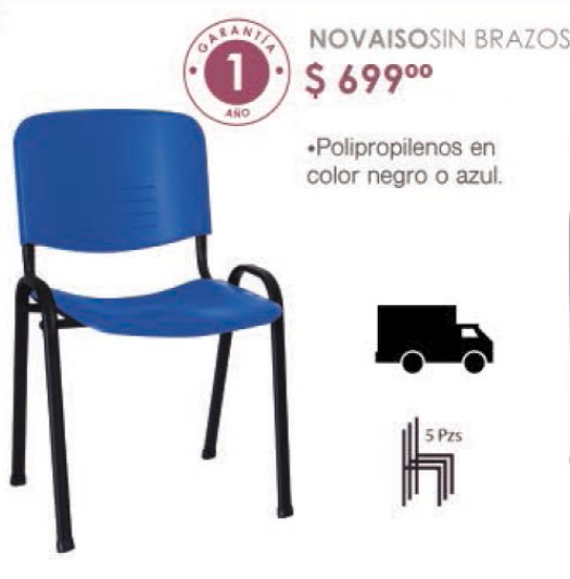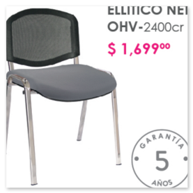 estructura: de acero tubular ovalado de 30 X 15 mm, calibre 18; los brazos son una extensión de las mismas patas, con acabado de pintura epóxica (electrostática) color negro mate.