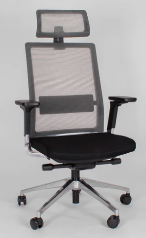 •respaldo en malla suave color gris y asiento tapizado en tela OFFICE